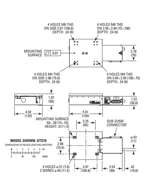 电动线性位移台,70mm行程,高扭矩直流电机, M4 和 M6