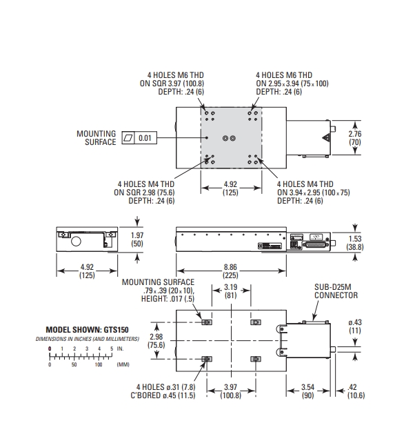 电动线性位移台,150mm行程,高扭矩直流电机, M4 和 M6